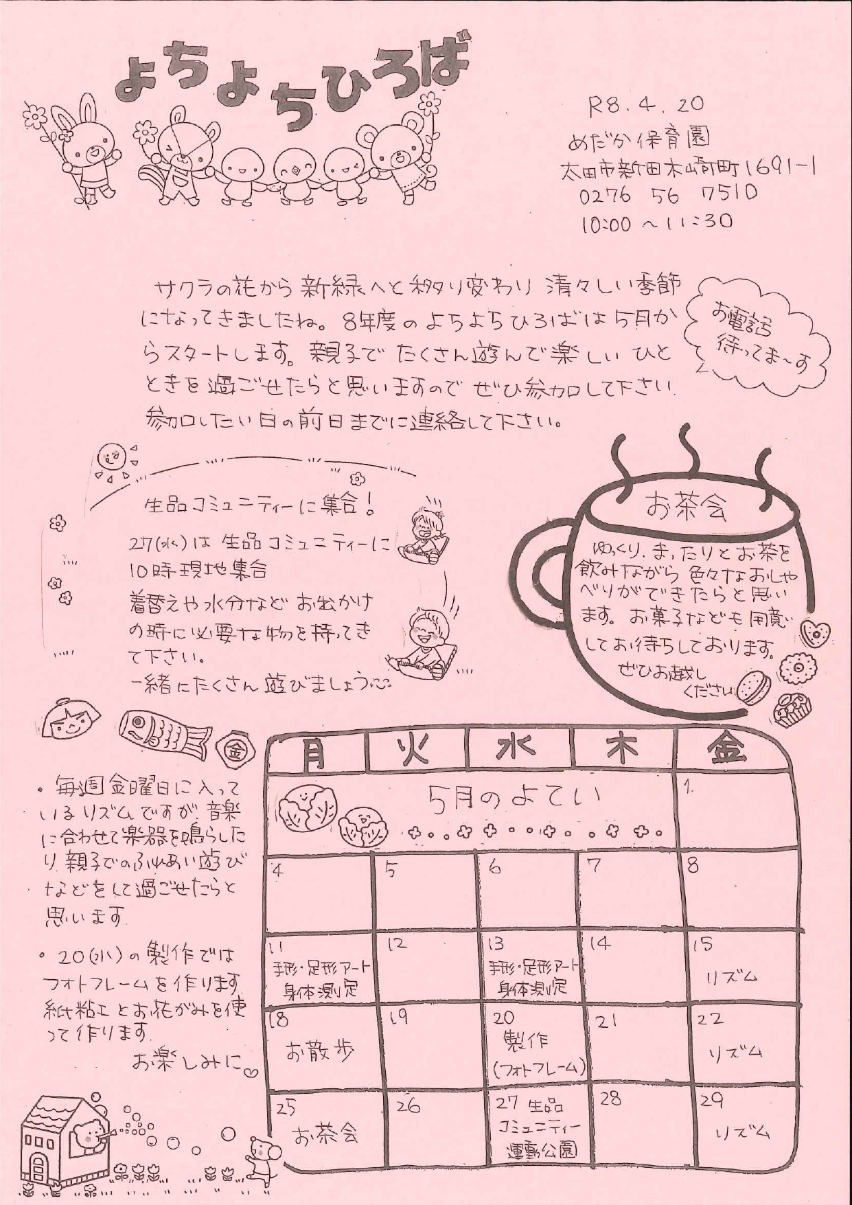 令和8年度 よちよちひろば 今年度のよちよちひろばが始まります。 みなさん遊びにきてくださいね。 コメントを残す コメントをキャンセルメールアドレスが公開されることはありません。 ※ が付いている欄は必須項目ですコメント ※ 名前 ※ メール ※ サイト 次回のコメントで使用するためブラウザーに自分の名前、メールアドレス、サイトを保存する。 上に表示された文字を入力してください。 « 前のページに戻る
